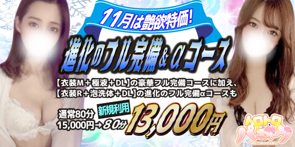 - 艶欲特価!フル完備80分が新規ご利用なら13000円!! 【艶欲特価第1弾!! 進化のフル完備&αコース】 【衣装M+極液+DL】の豪華フル完備コースに加え 【衣装R+泡洗体+DL】の進化のフル完備αコースも 通常80分15,000円 → 新規なら【80分 13,000円】‼ 癒しと刺激が詰まった至福の時間を、この夏ぜひご堪能ください。